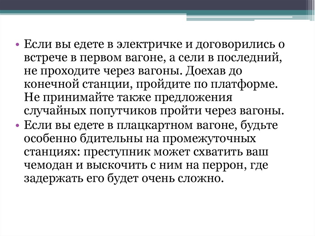 • Если вы едете в электричке и договорились овстрече в первом вагоне, а сели в последний,