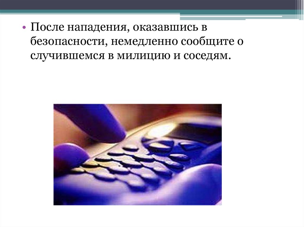 • После нападения, оказавшись вбезопасности, немедленно сообщите о