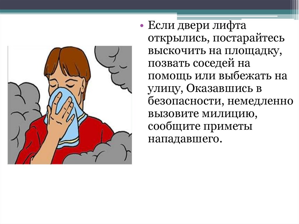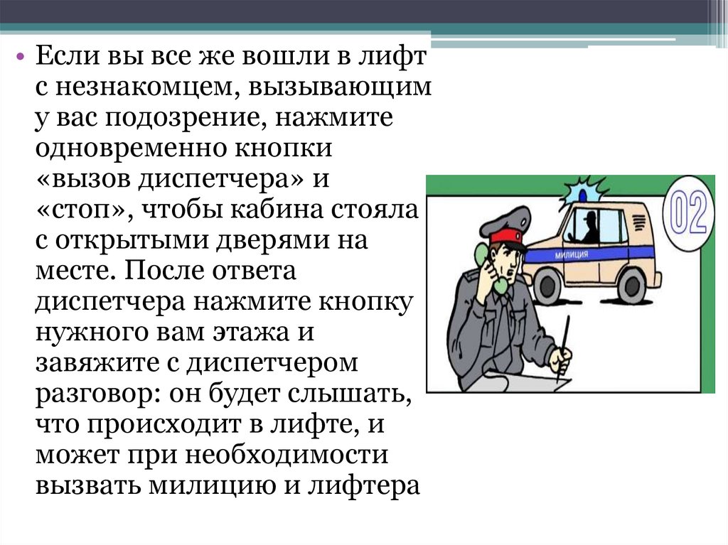 • Если вы все же вошли в лифтс незнакомцем, вызывающим