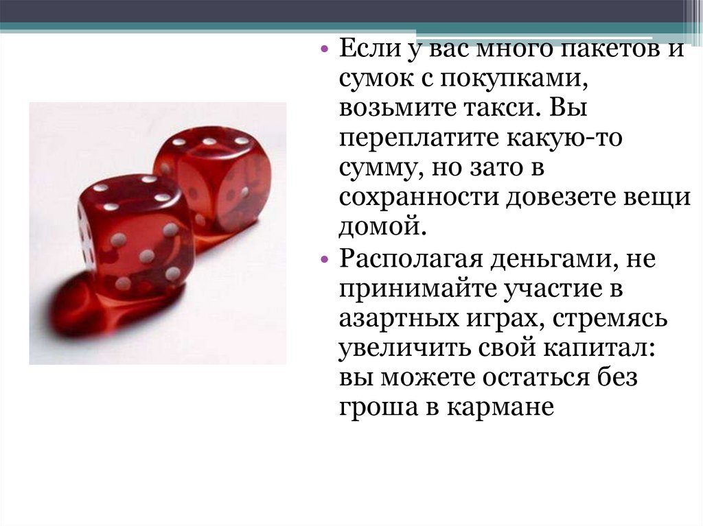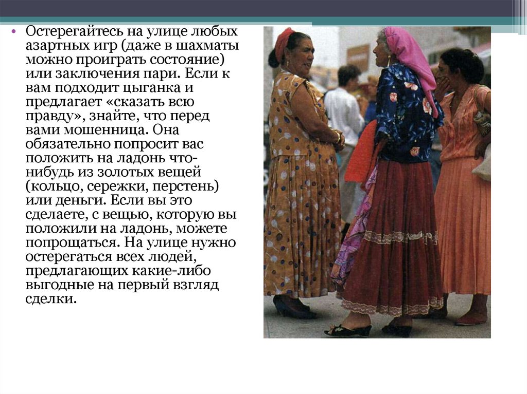 • Остерегайтесь на улице любыхазартных игр (даже в шахматы