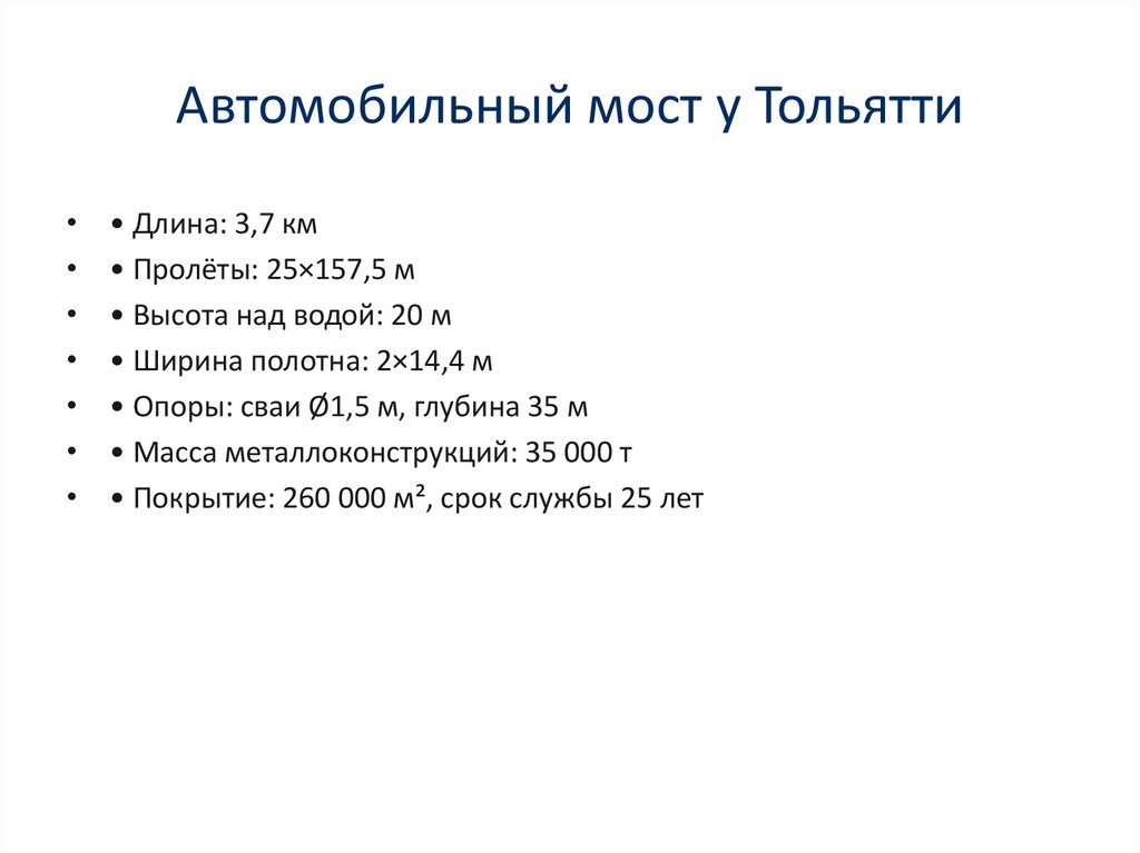 Автомобильный мост у Тольятти• Длина: 3,7 км