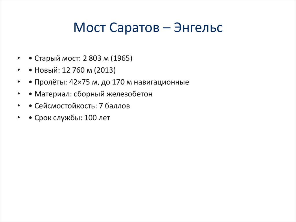 Мост Саратов – Энгельс• Старый мост: 2 803 м (1965)