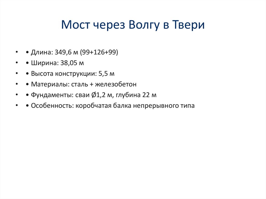 Мост через Волгу в Твери• Длина: 349,6 м (99+126+99)
