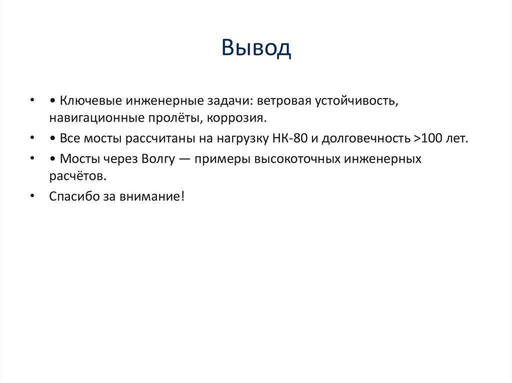 Вывод• • Ключевые инженерные задачи: ветровая устойчивость,