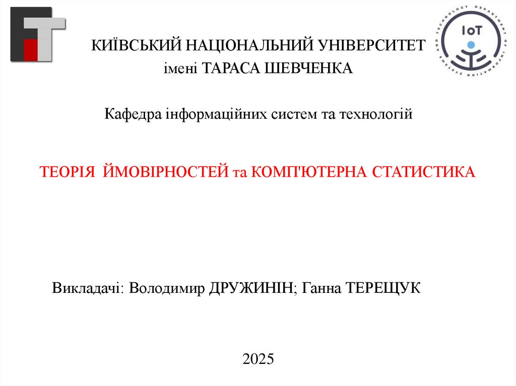 ТЕОРІЯ ЙМОВІРНОСТЕЙ та КОМП'ЮТЕРНА СТАТИСТИКА