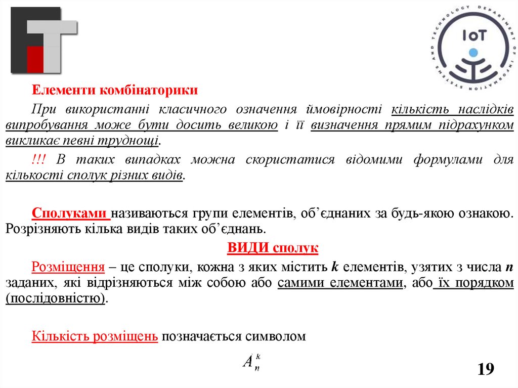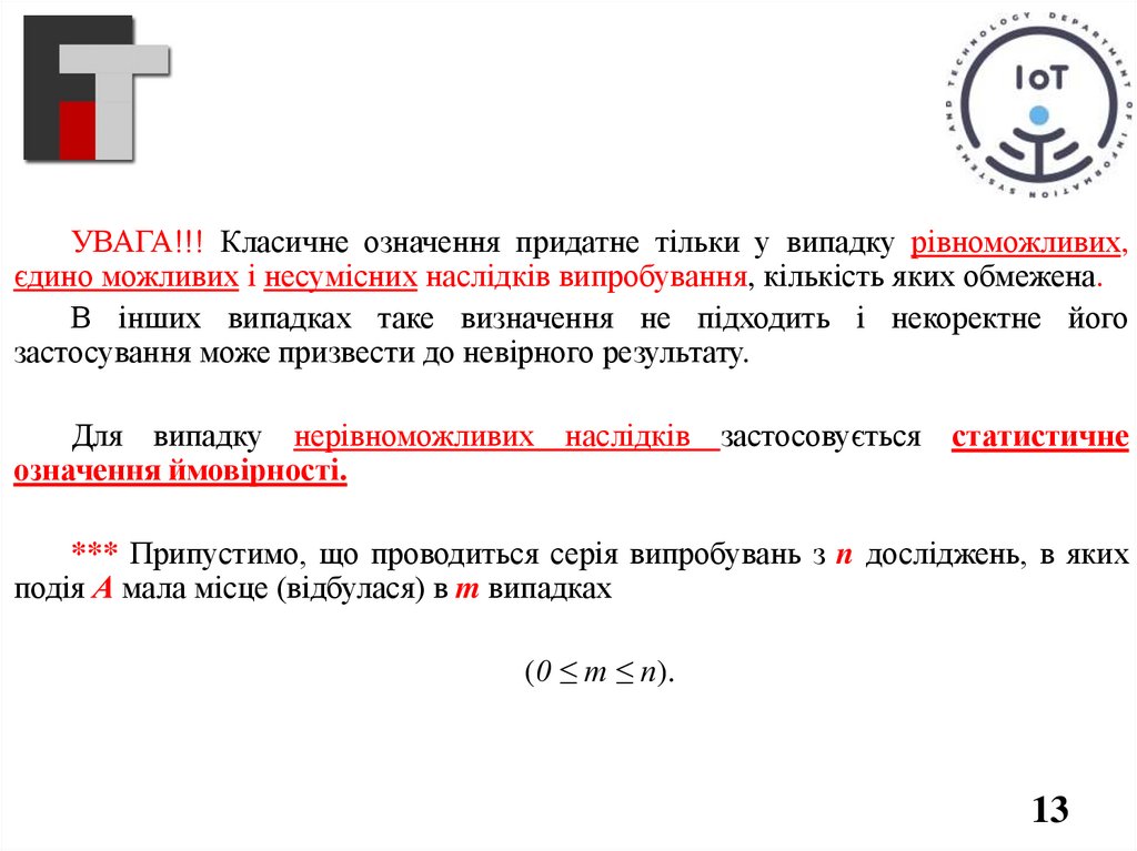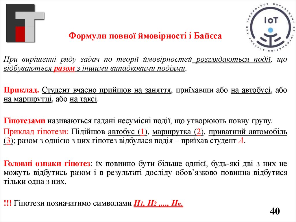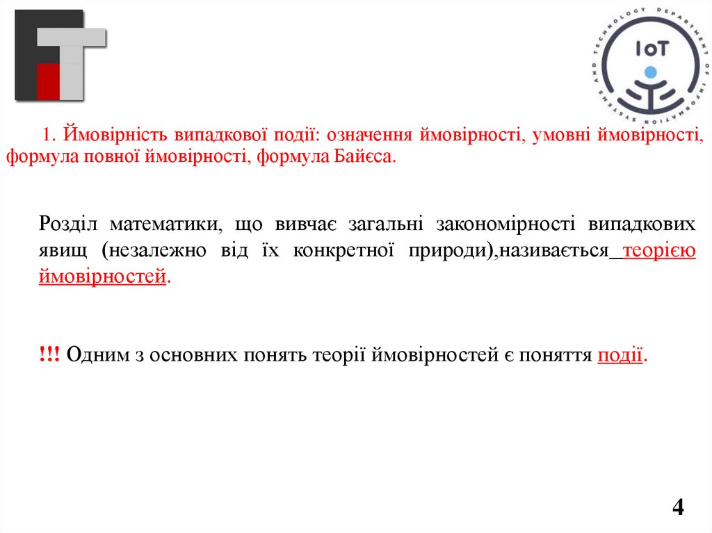 ЛЕКЦІЯ № 1,2: «Ймовірність випадкової події: означення ймовірності,умовні ймовірності, формула повної ймовірності, формула Байєса.