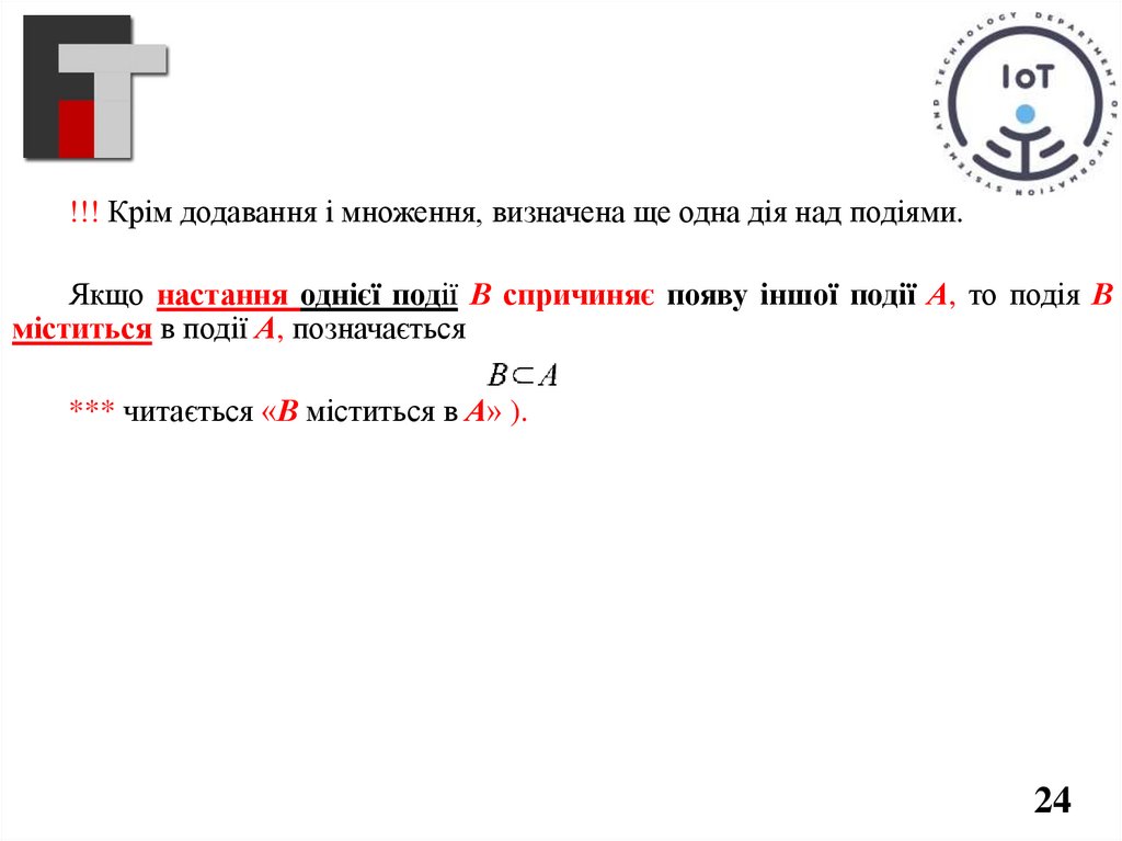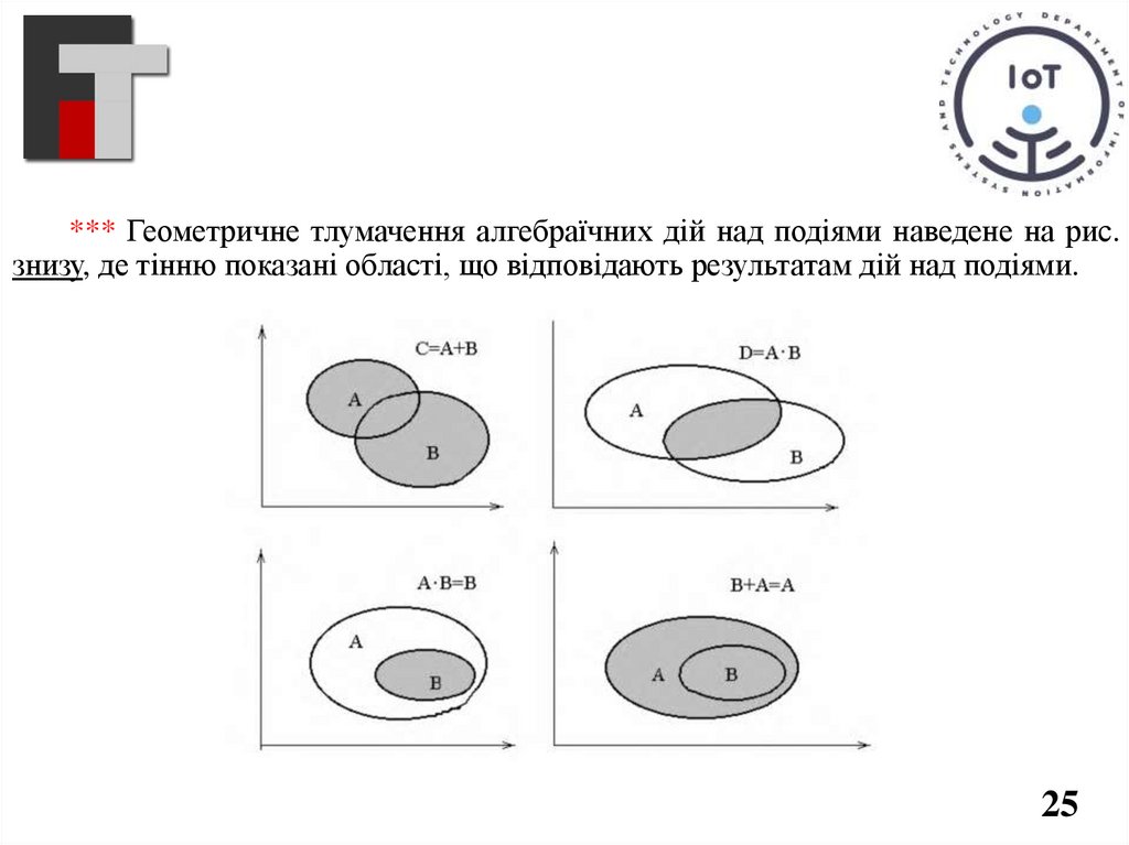 !!! В теорії ймовірностей розглядаються не тільки окремі елементарніподії, але і їхні сукупності.