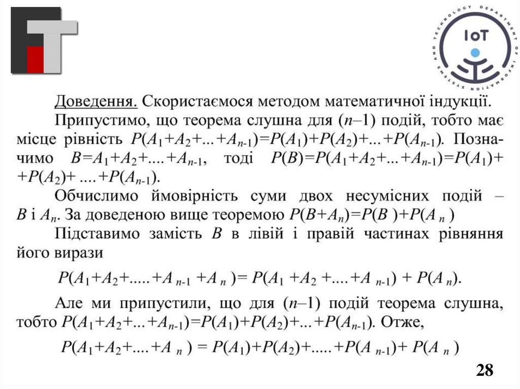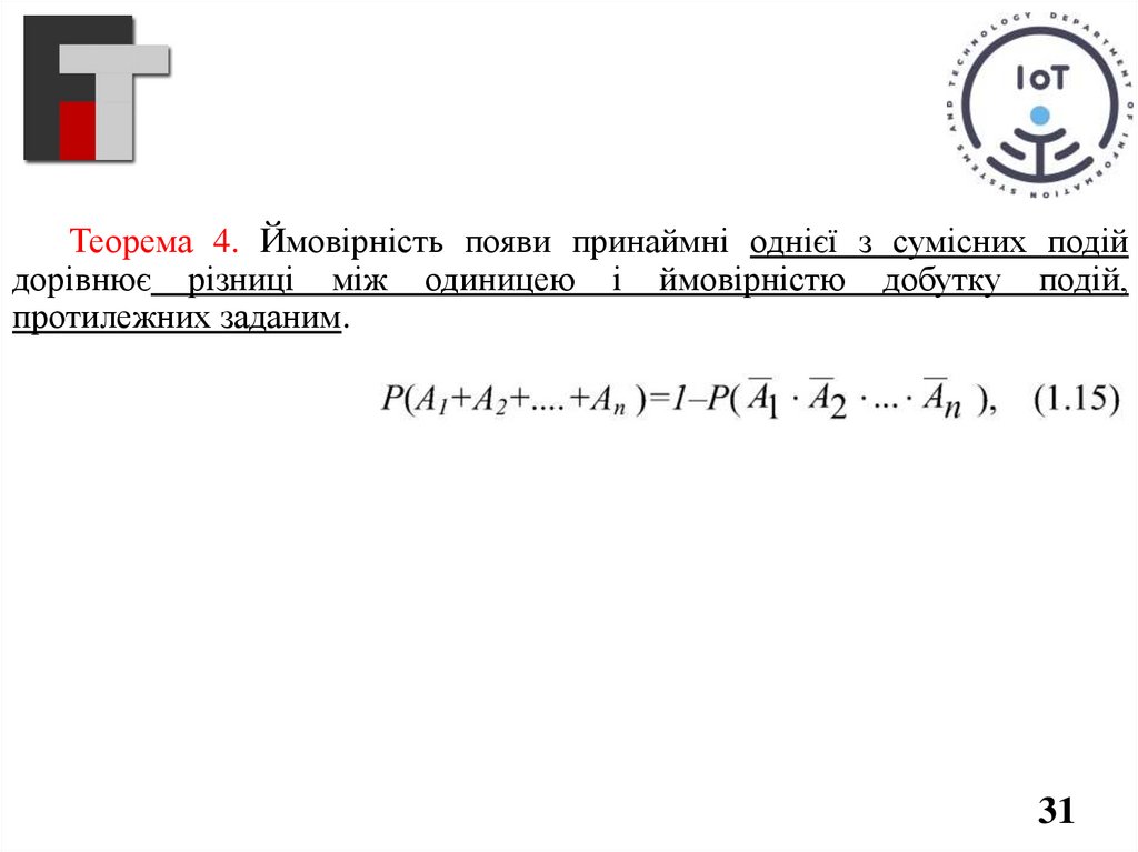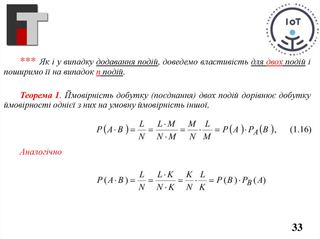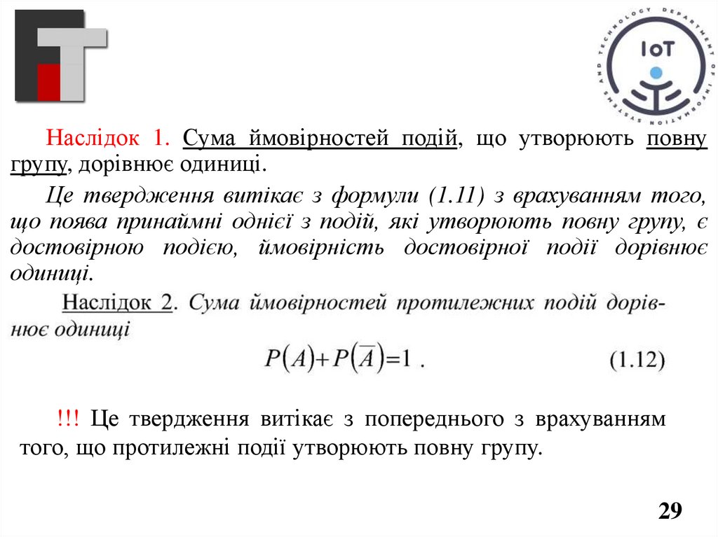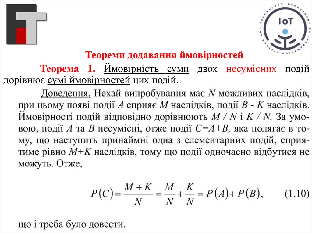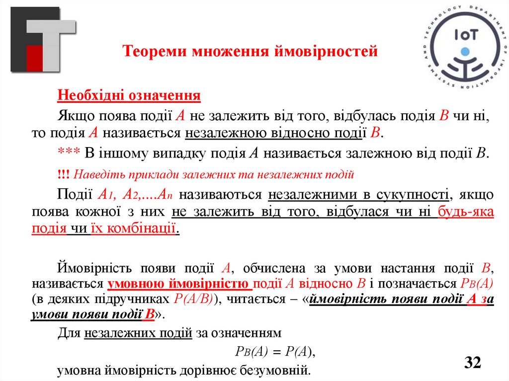 13. Сформулювати і записати теореми обчислення ймовірностей