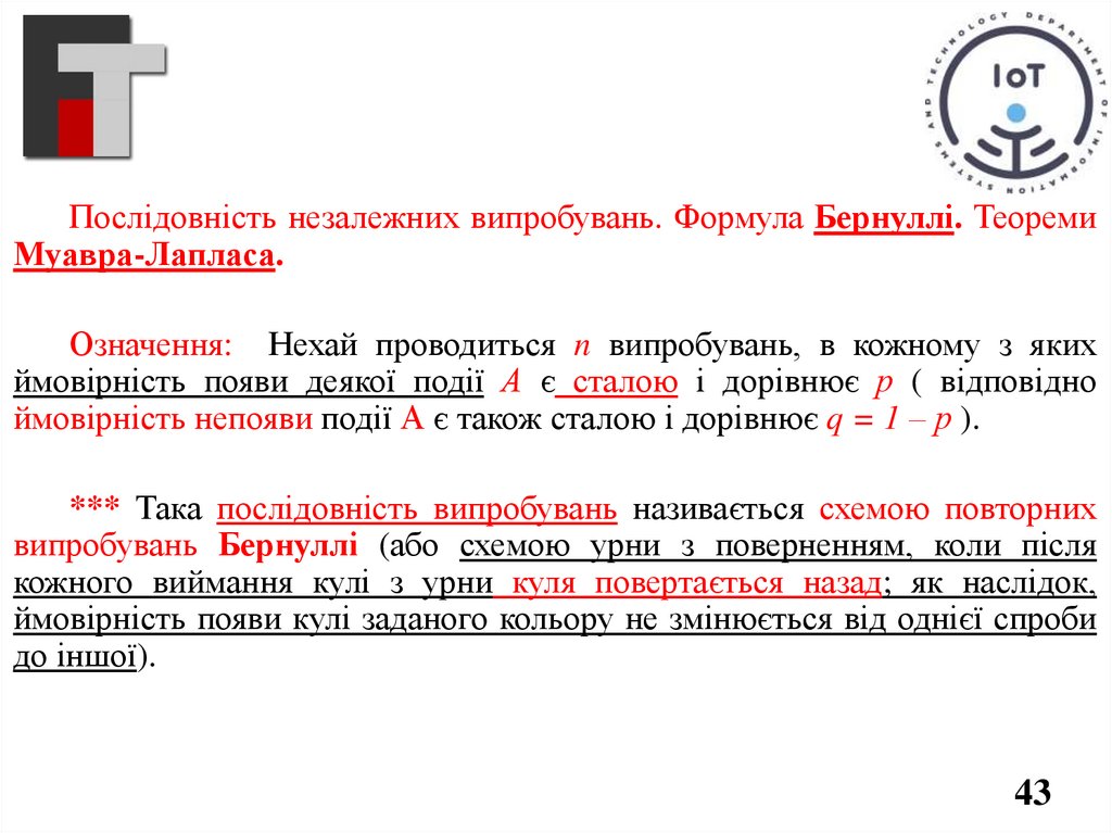 Послідовність незалежних випробувань. Формула Бернуллі. Теореми