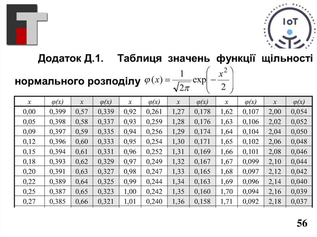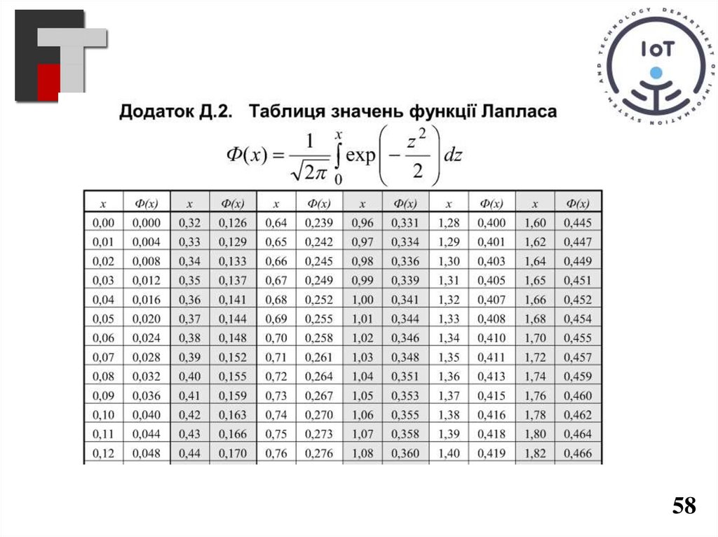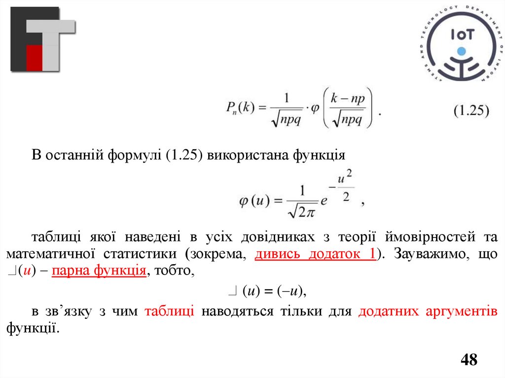 В останній формулі (1.25) використана функціятаблиці якої наведені в усіх довідниках з теорії ймовірностей та
