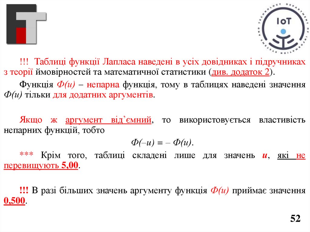Функція Ф(u) – непарна функція, тому в таблицях наведені значення
