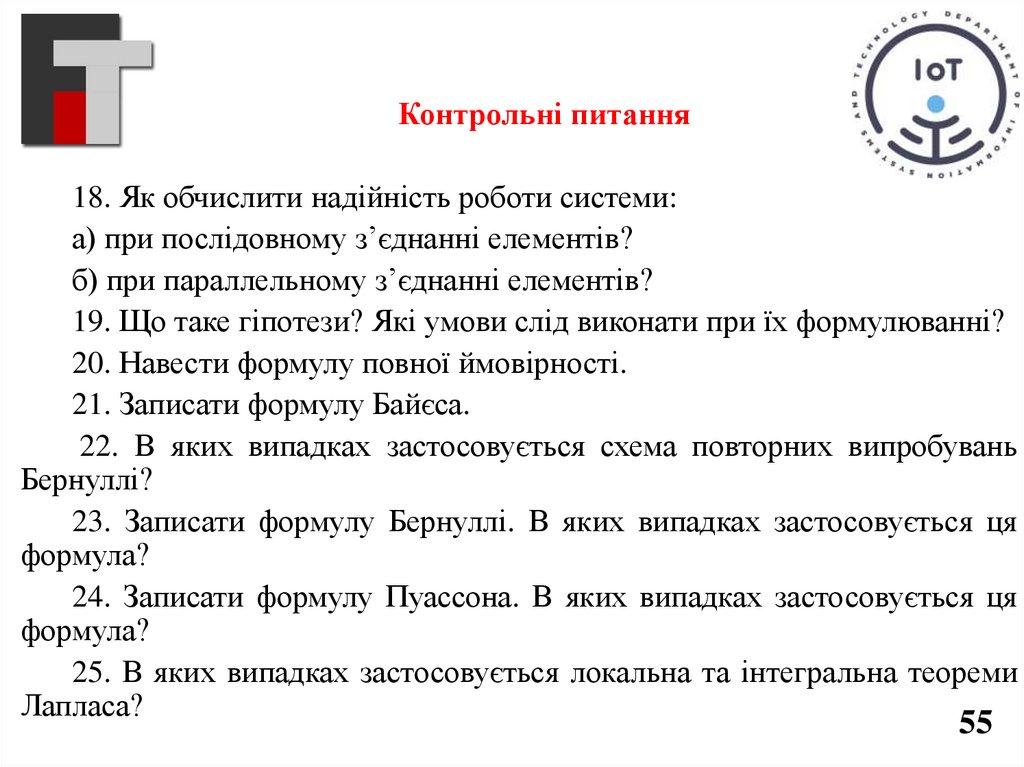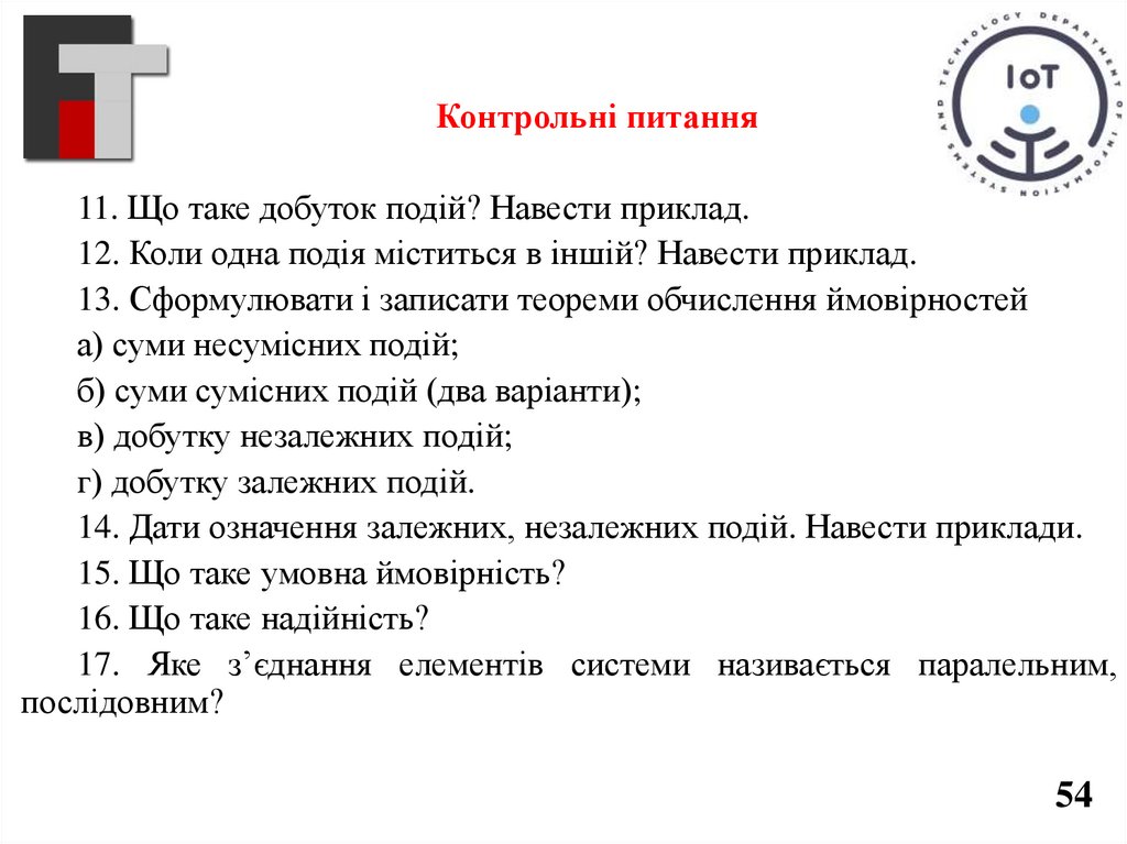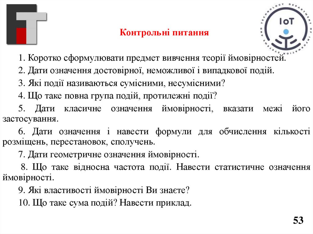 Контрольні питання1. Коротко сформулювати предмет вивчення теорії ймовірностей.