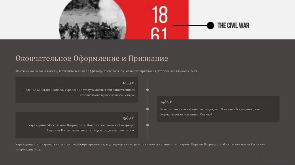 С 1448 года Русская Церковь стала по факту автокефальной, провозгласив свою независимость от ослабевшего и униатского Константинополя.
