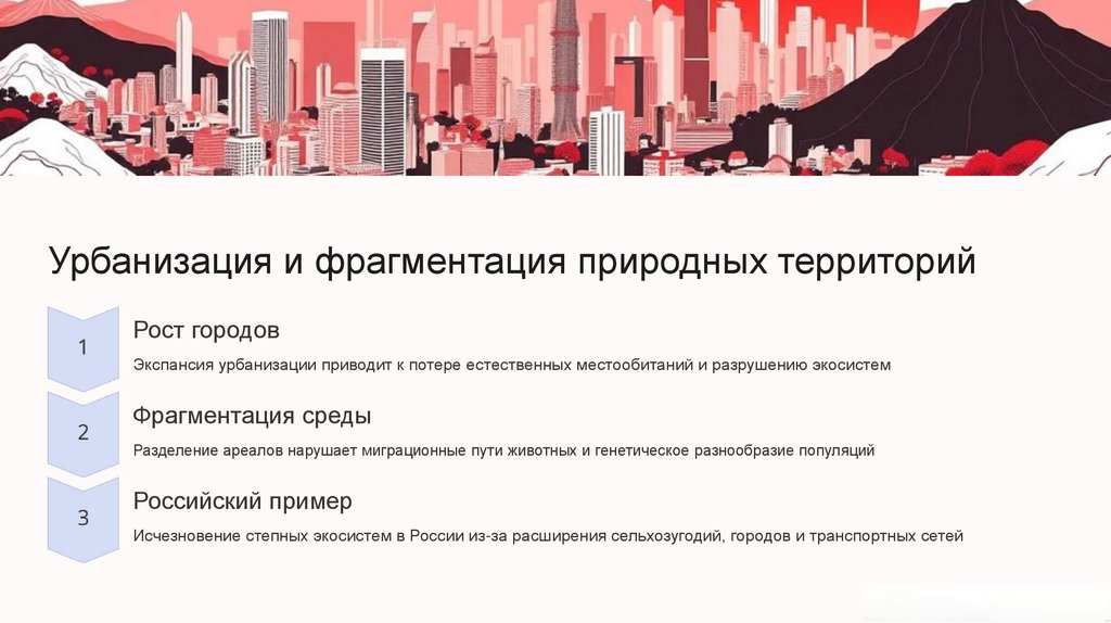 Экспансия урбанизации приводит к потере естественных местообитаний и разрушению экосистем
