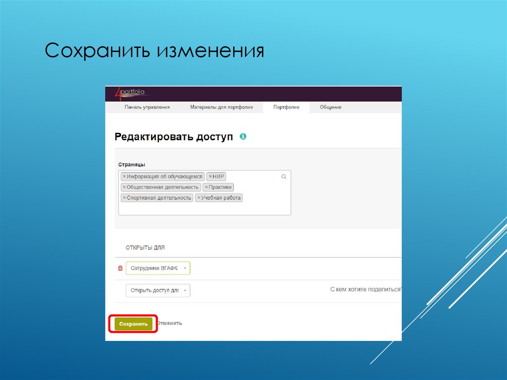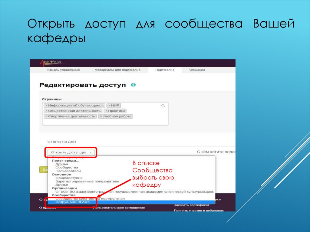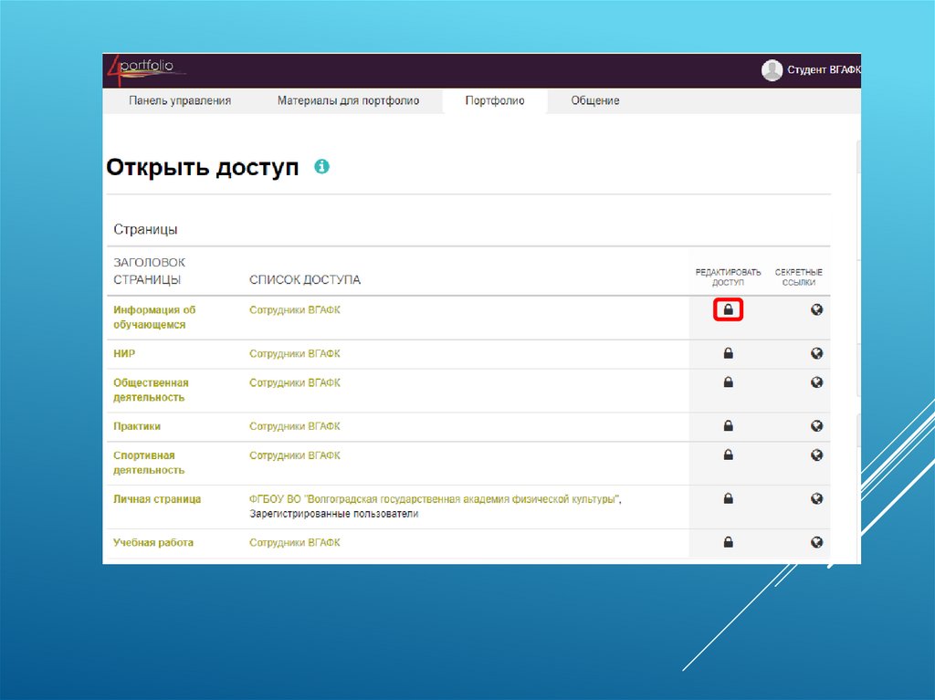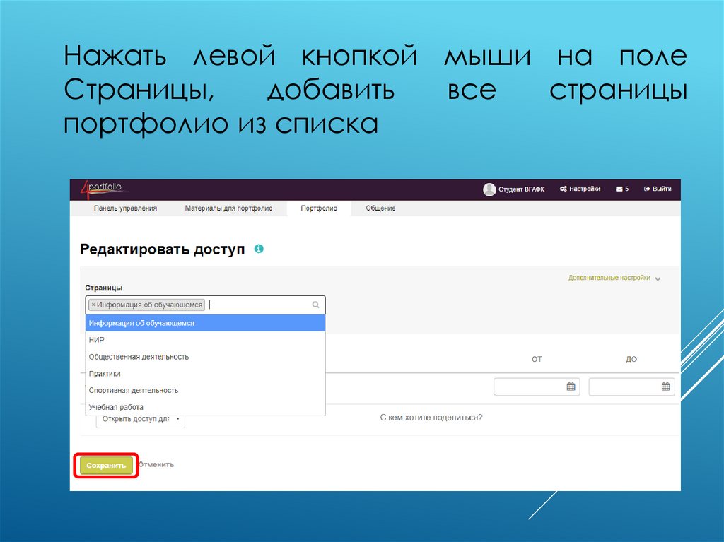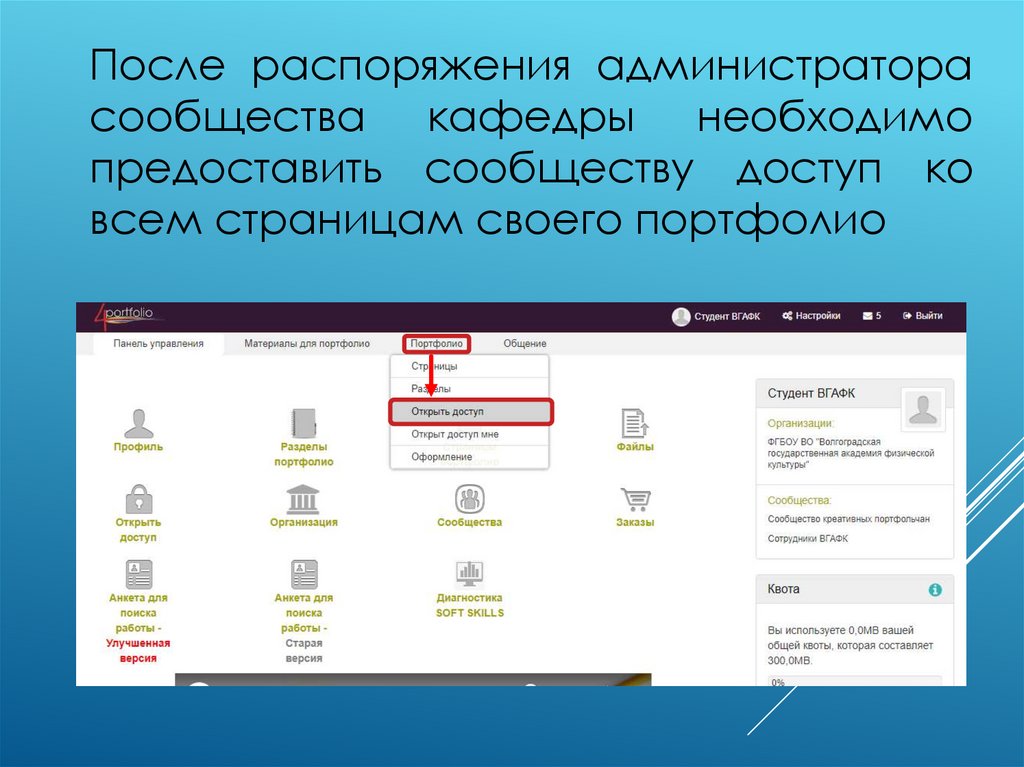1. Организация размещения портфолио обучающегося В ВГАФК на портале 4PorTfolio.ru