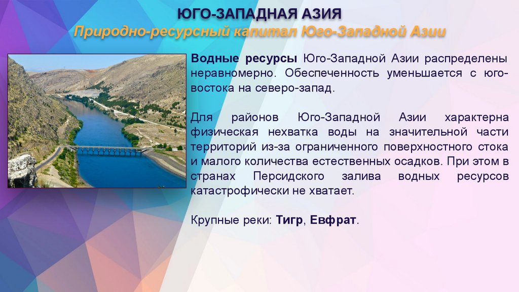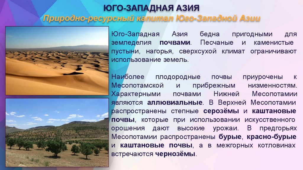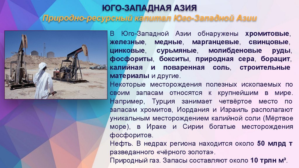 4. Назовите природно-ресурсный капитал ЮгоЗападной Азии