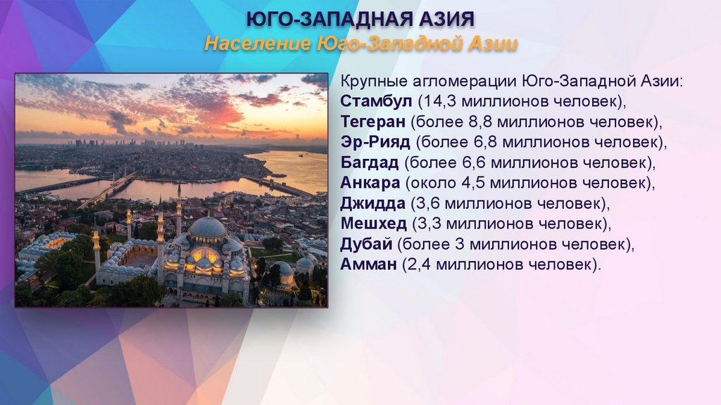 крупные агломерации Юго-Западной Азии