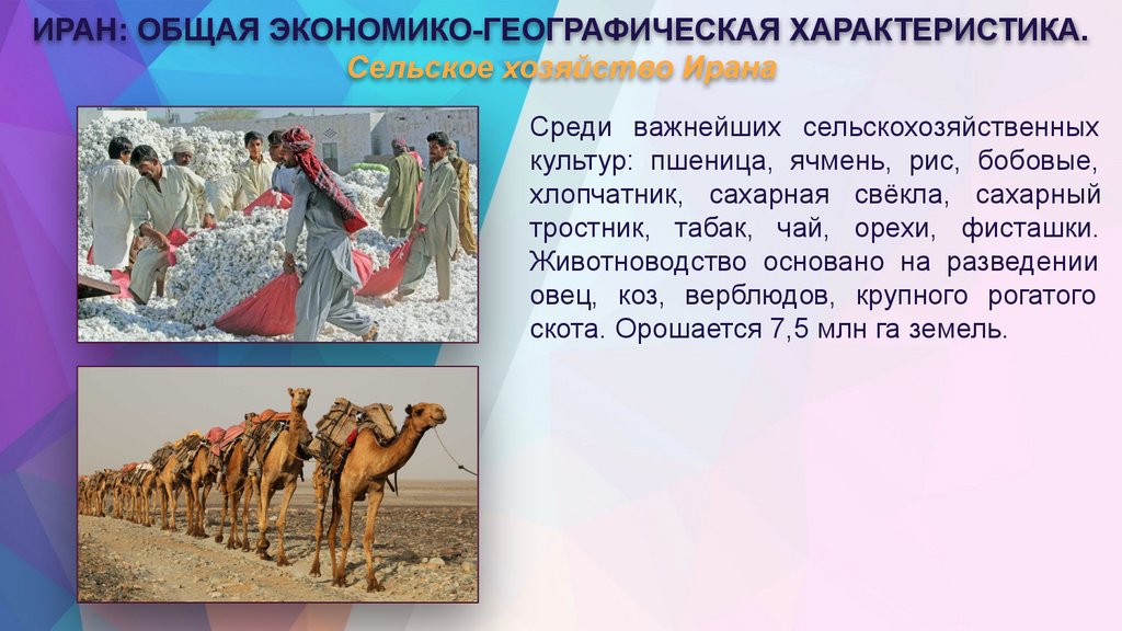 ИРАН: ОБЩАЯ ЭКОНОМИКО-ГЕОГРАФИЧЕСКАЯ ХАРАКТЕРИСТИКА.Сельское хозяйство Ирана
