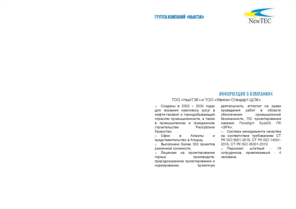 ТОО «НьюТЭК» и ТОО «Ивикон-Стандарт-ЦСМ»o Созданы в 2002 – 2004 годах