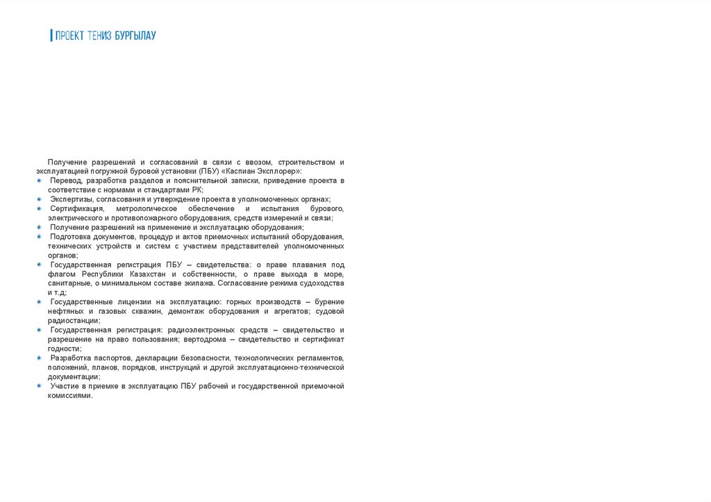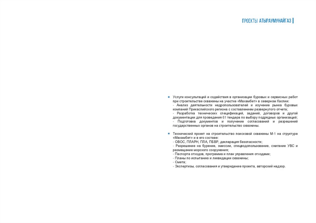 Услуги консультаций и содействия в организации буровых и сервисных работпри строительстве скважины на участке «Махамбет» в северном Каспии:
