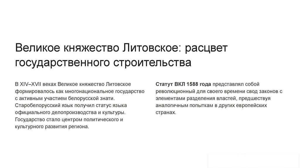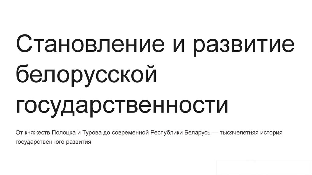 развития. От княжеств Полоцка и Турова через Великое княжество Литовское к современной независимой Республике Беларусь