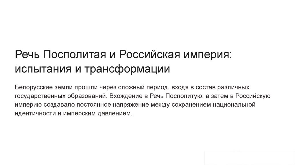 государственных образований. Вхождение в Речь Посполитую, а затем в Российскую