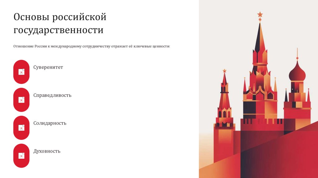Отношение России к международному сотрудничеству отражает её ключевые ценности: