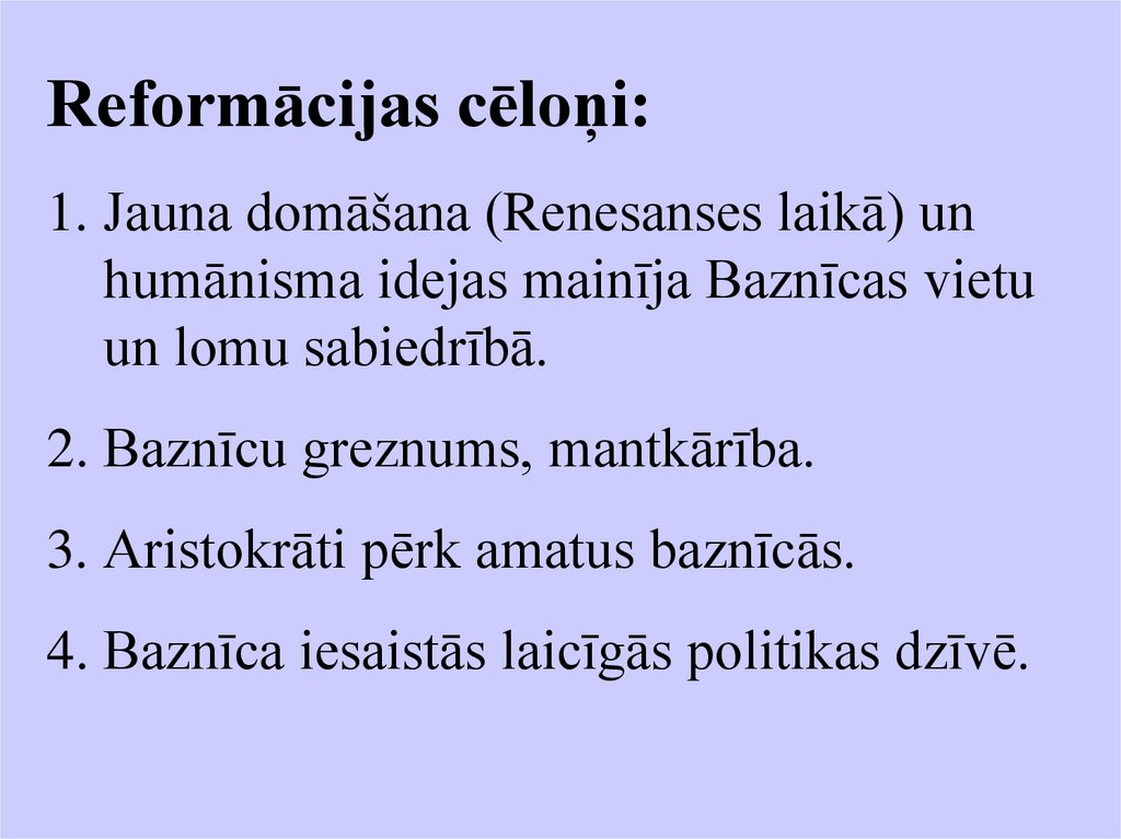 • Zinu Reformācijas cēloņus