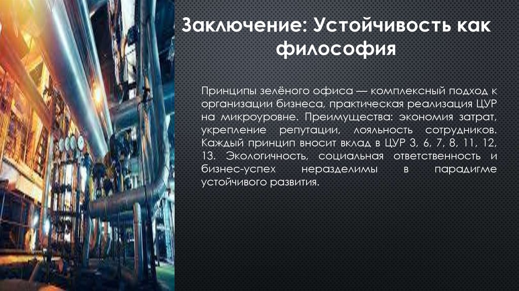 Каждый принцип вносит вклад в ЦУР 3, 6, 7, 8, 11, 12,