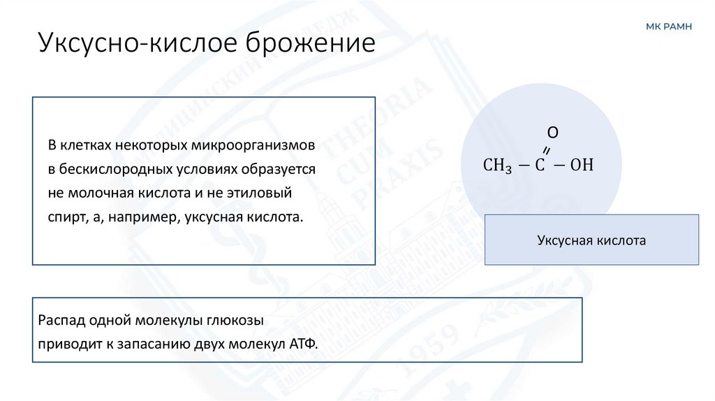 Уксусно-кислое брожениеВ клетках некоторых микроорганизмов