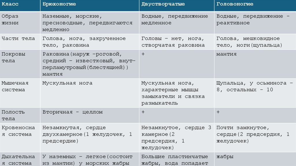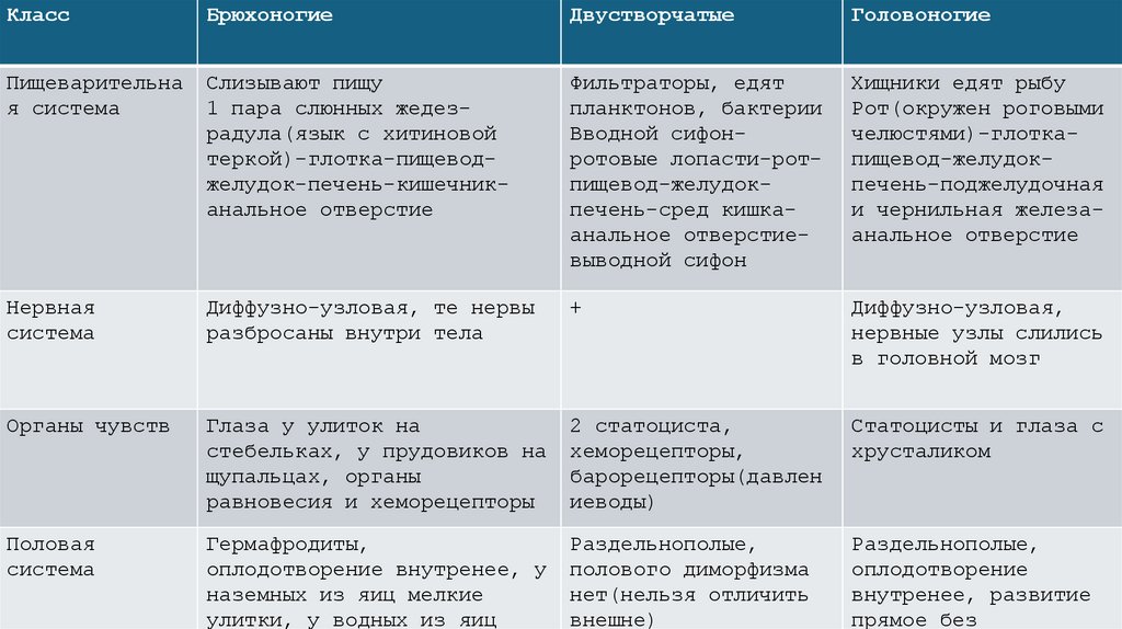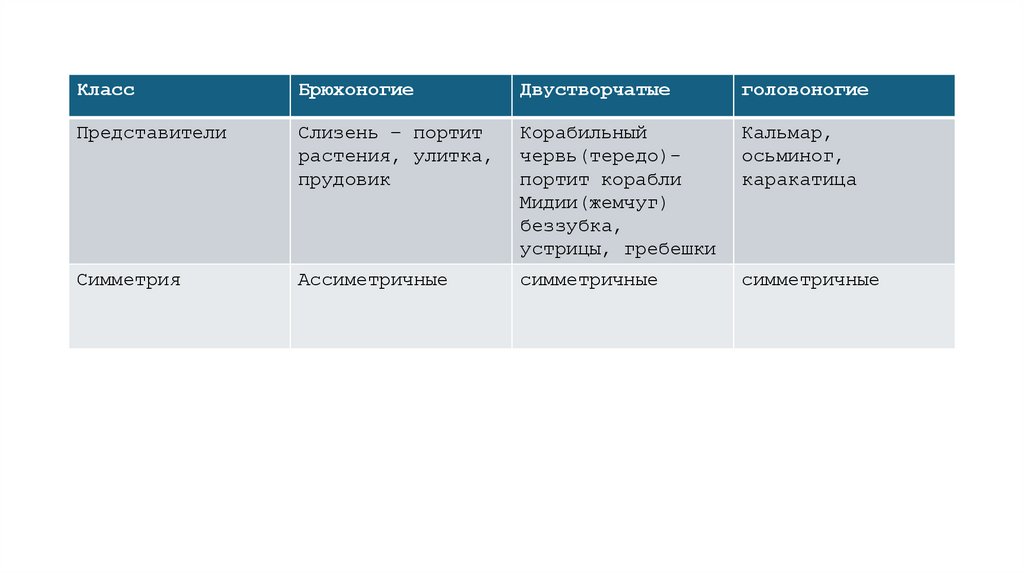 • Делятся на 3 класса: Брюхоногие, Двустворчатые,