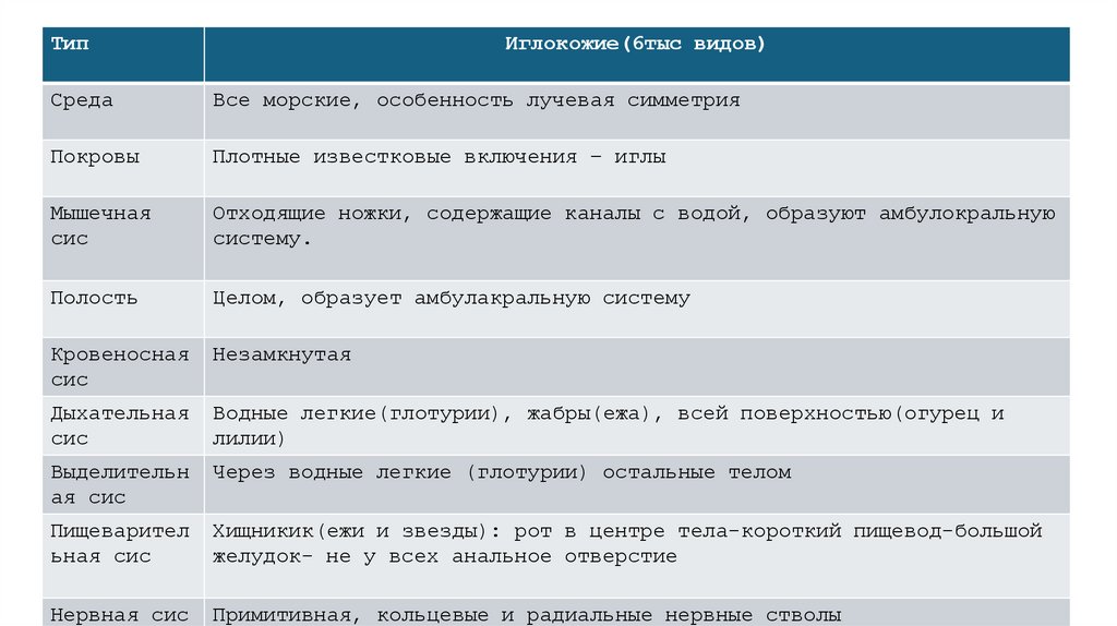 Водные легкие(глотурии), жабры(ежа), всей поверхностью(огурец и