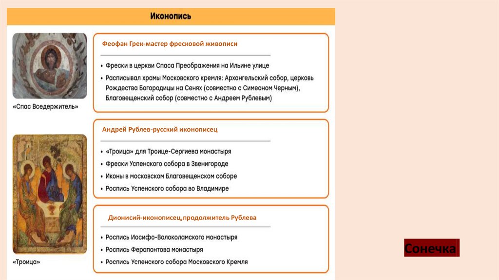 Феофан Грек-мастер фресковой живописиАндрей Рублев-русский иконописец