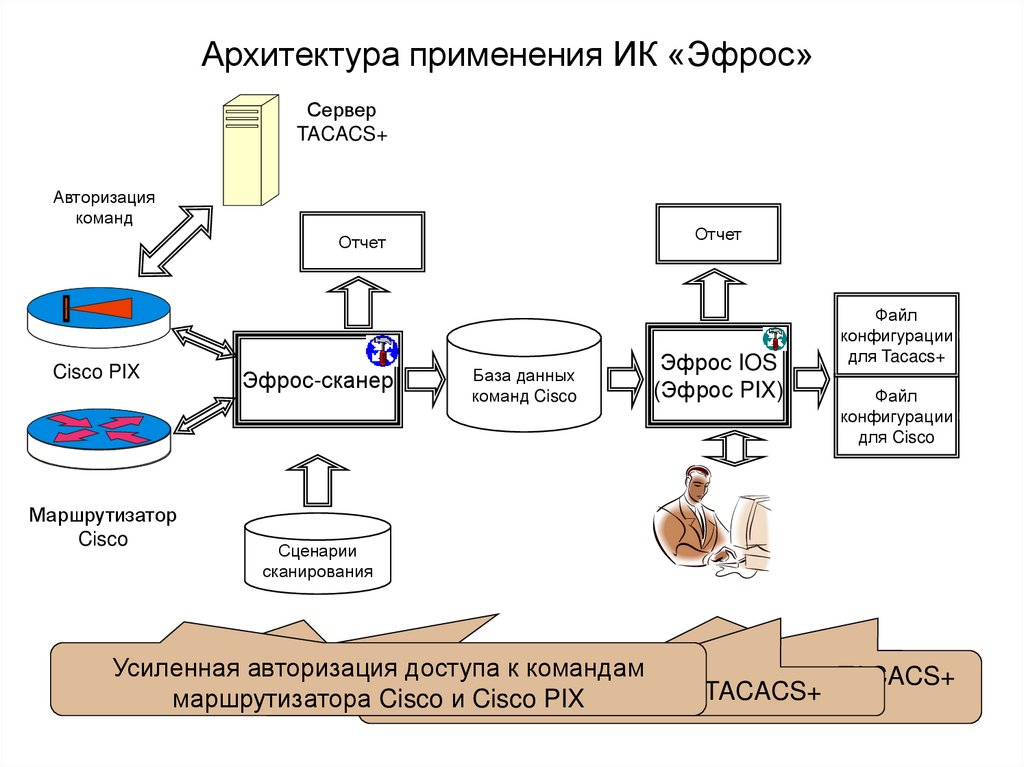 • Схема №1: применение внешнего сервераавторизации команд типа Tacacs+