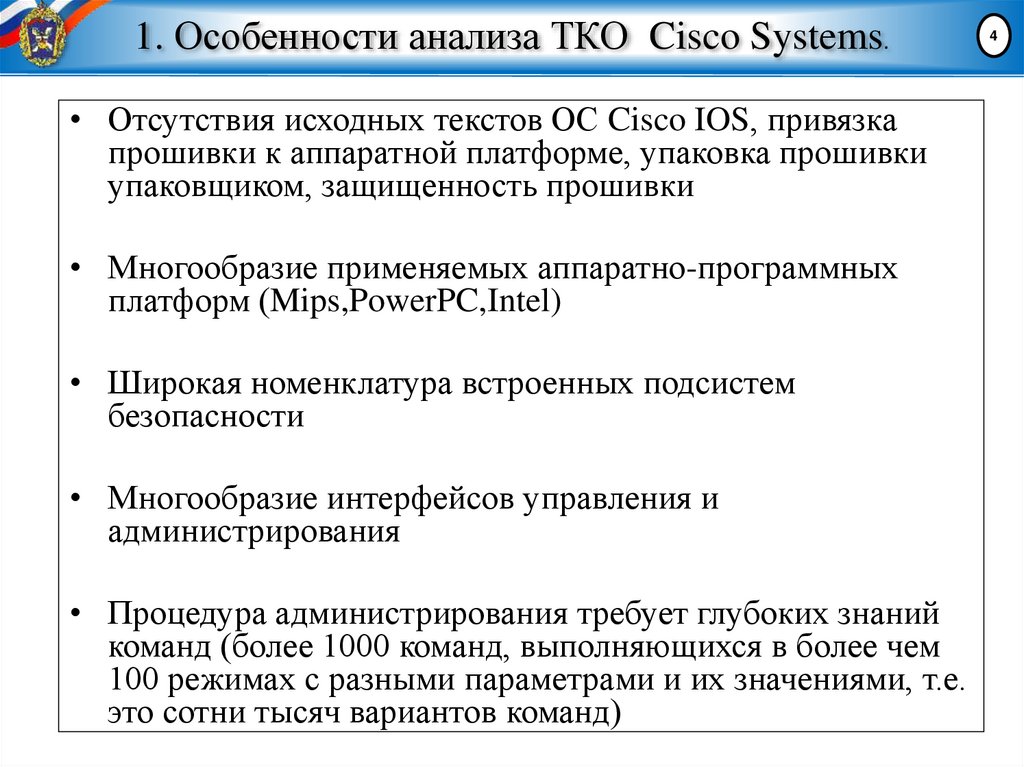 1. Особенности анализа ТКО Cisco Systems.• Отсутствия исходных текстов ОС Cisco IOS, привязка
