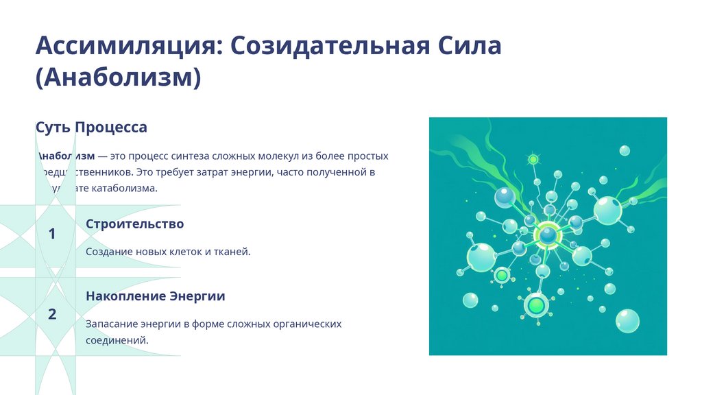 Анаболизм — это процесс синтеза сложных молекул из более простых