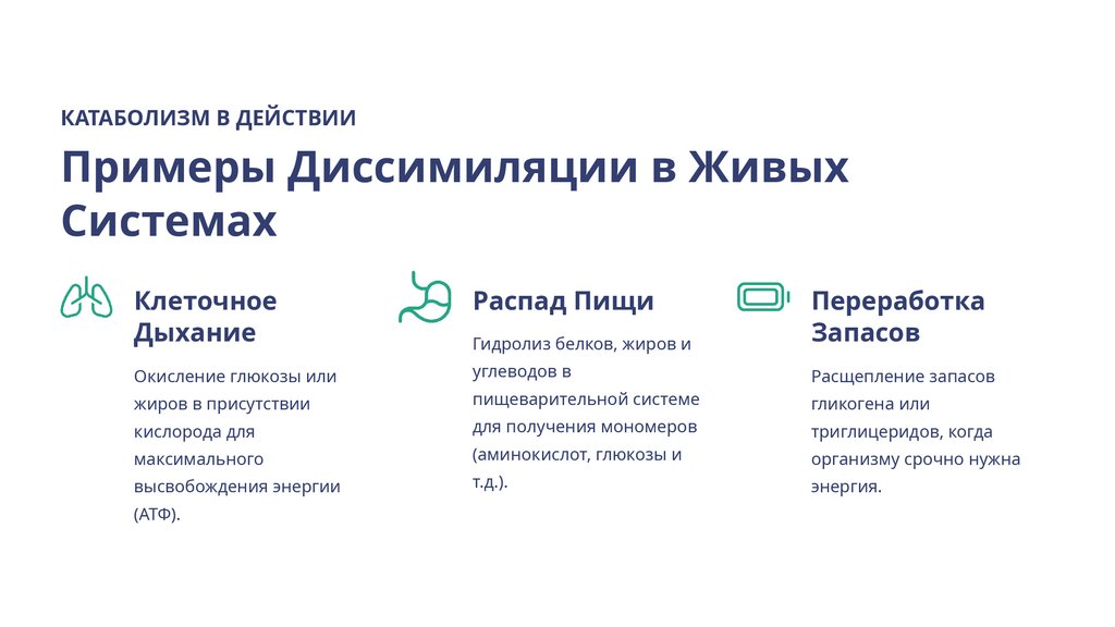 КАТАБОЛИЗМ В ДЕЙСТВИИПримеры Диссимиляции в Живых