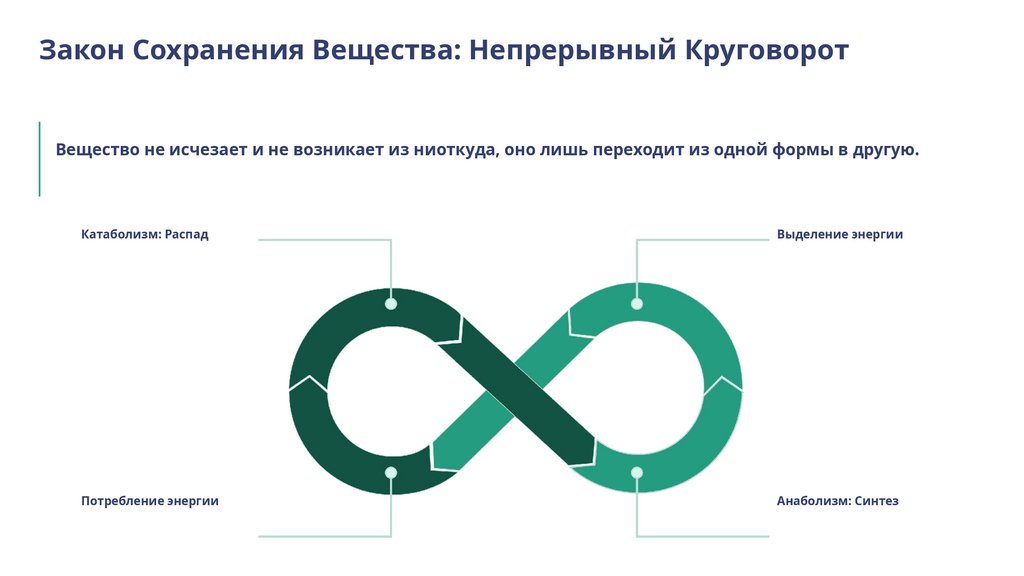 Закон Сохранения Вещества: Непрерывный КруговоротВещество не исчезает и не возникает из ниоткуда, оно лишь переходит из одной формы в другую.