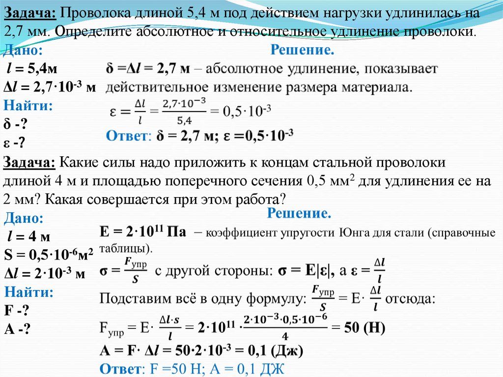 2. Стальная струна диаметром 0,5 мм и длиной 80 см растягивается на 1мм.
