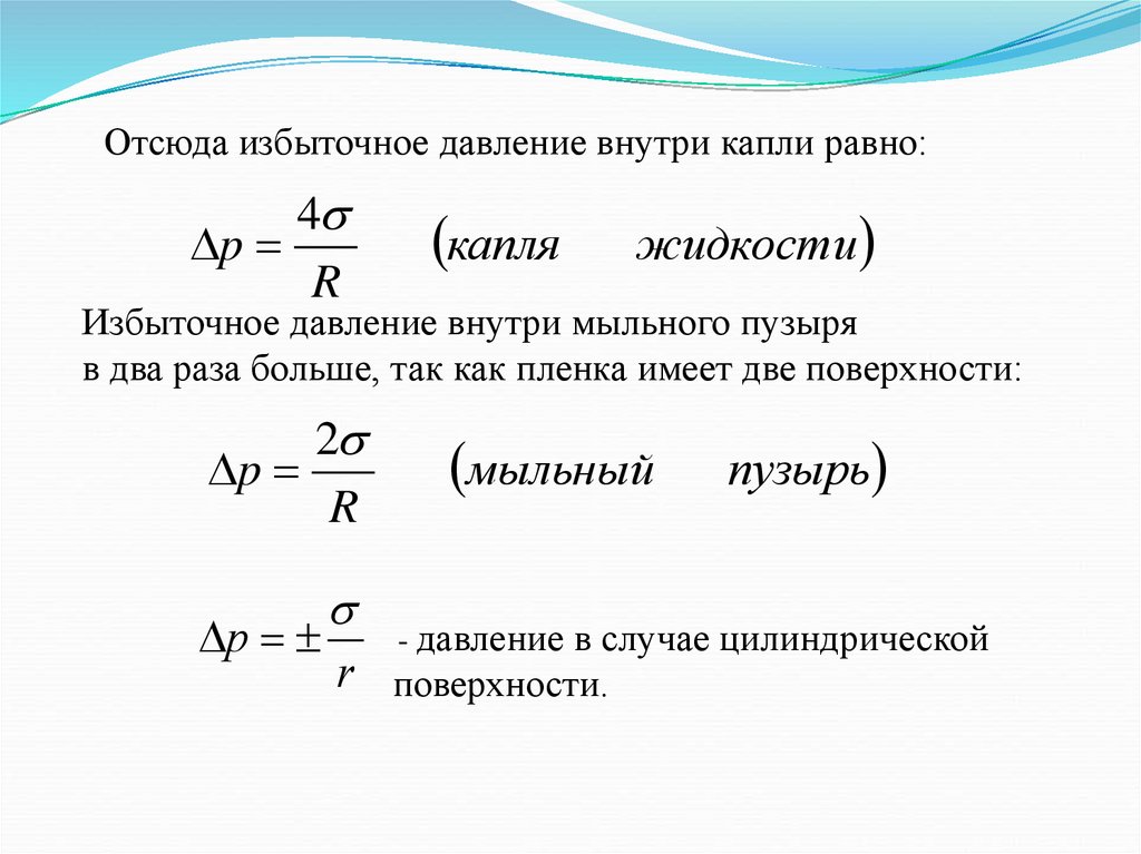 В случае выпуклого мениска давление внутри жидкости больше, чем