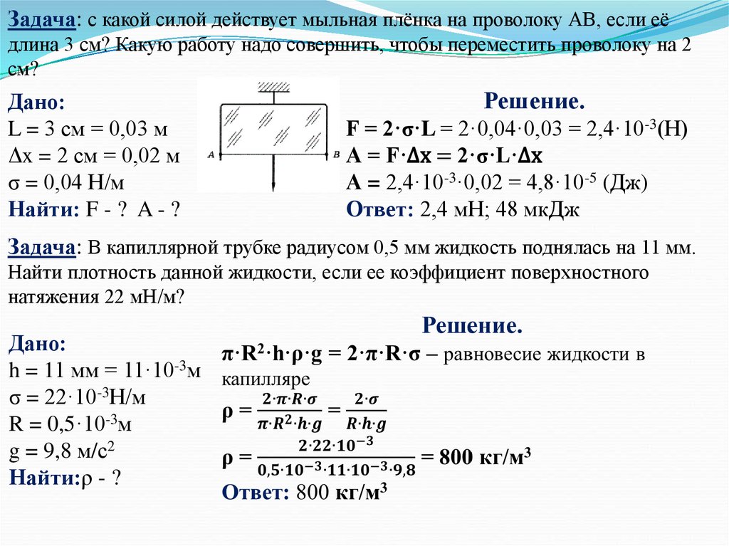 Задача: В капиллярной трубке радиусом 0,5 мм жидкость поднялась на 11 мм.