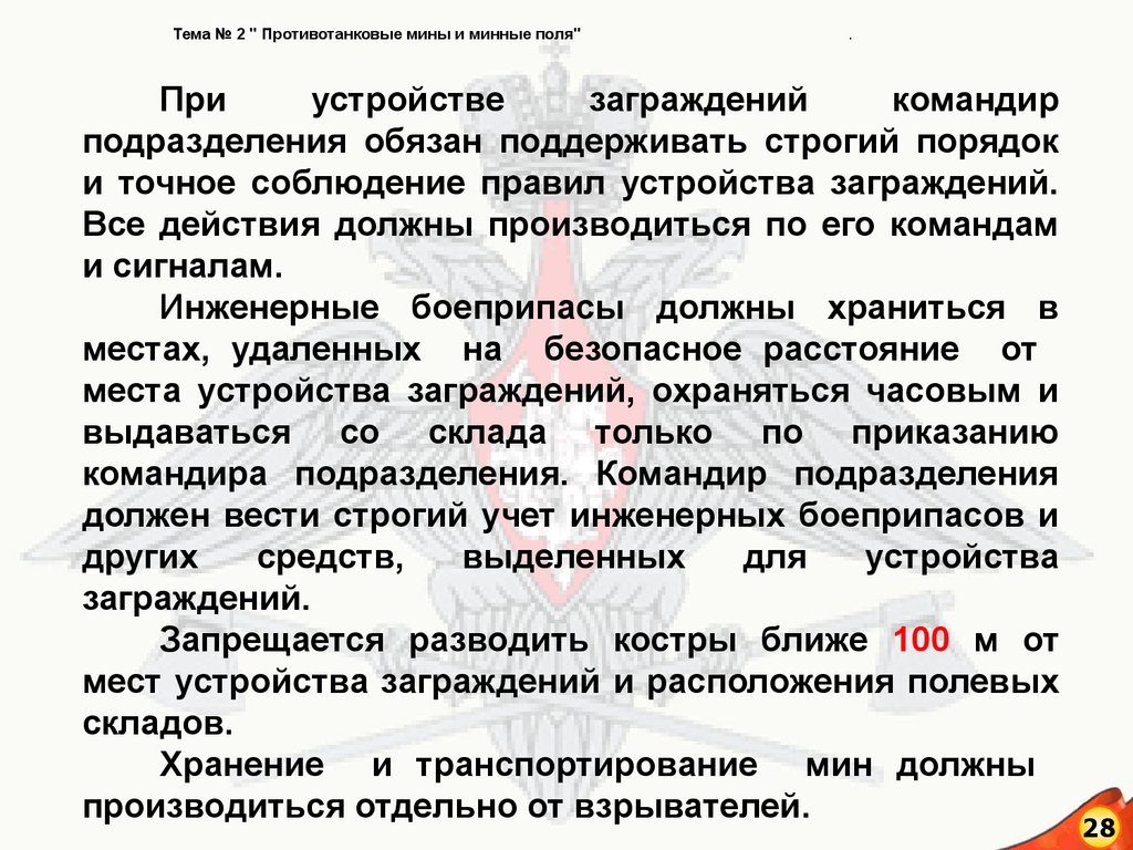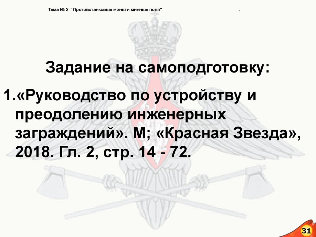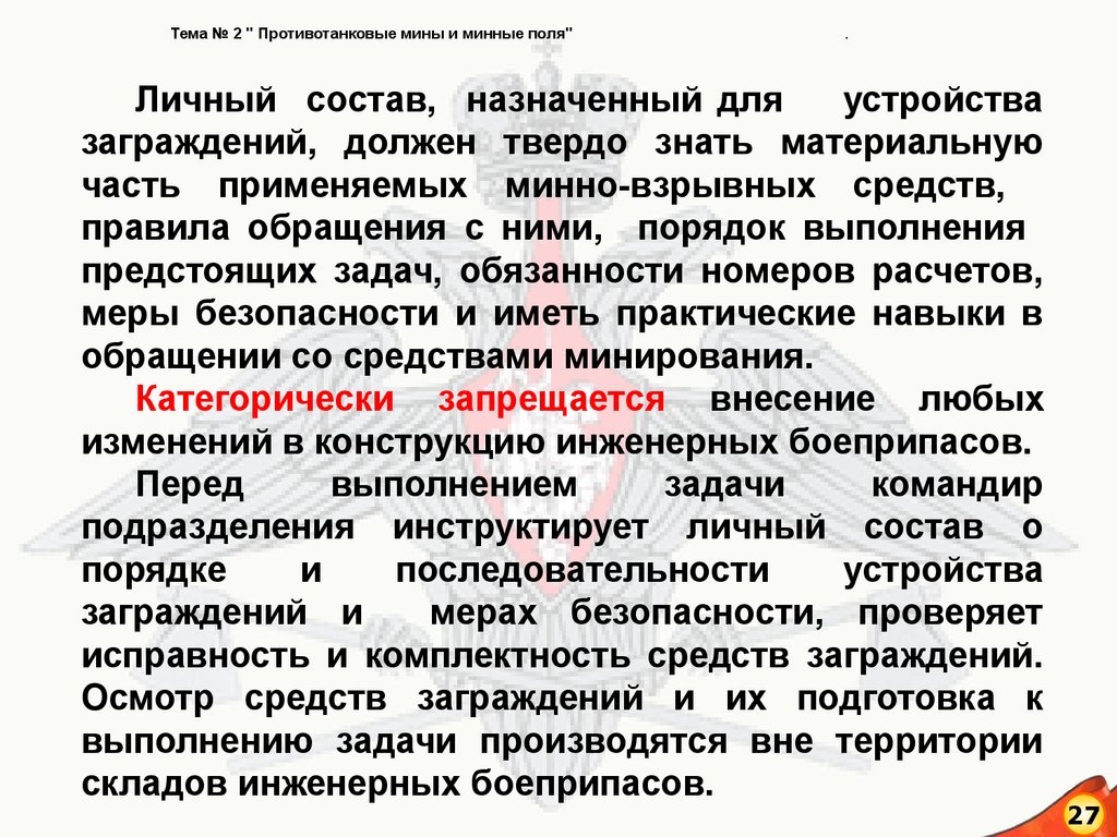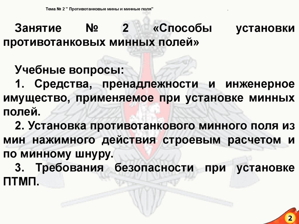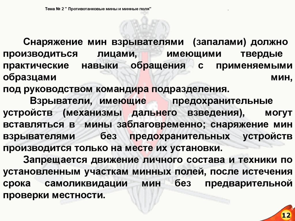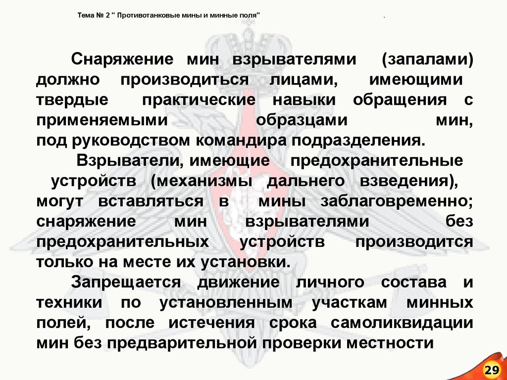 Тема № 2 " Противотанковые мины и минные поля"Занятие