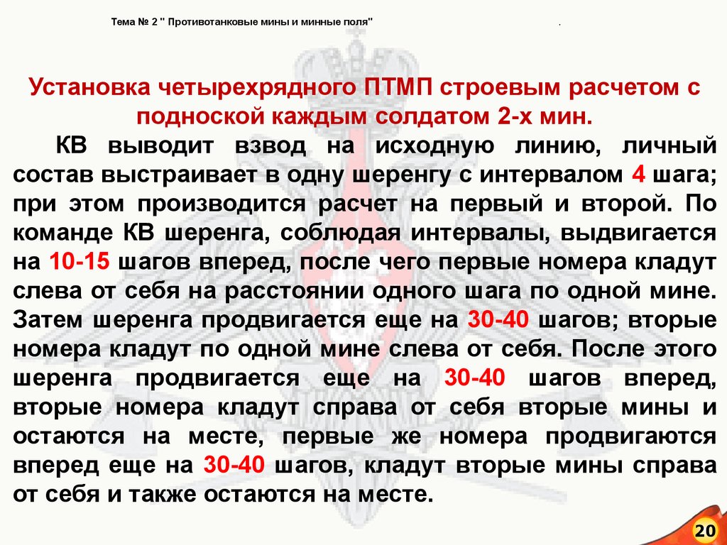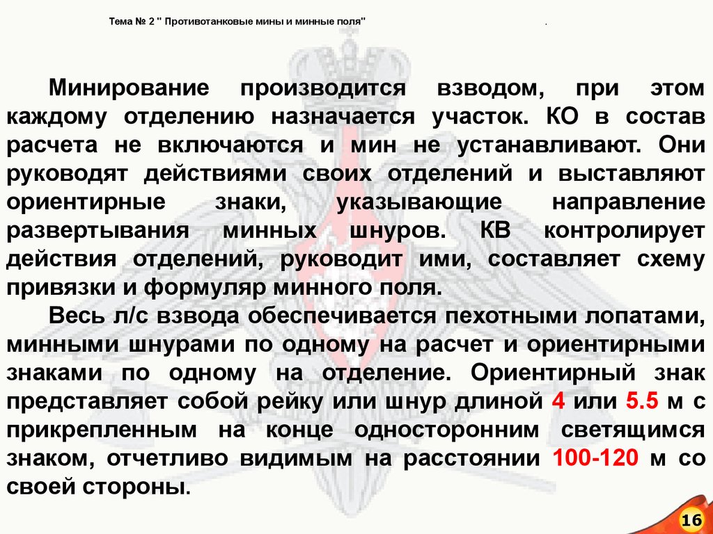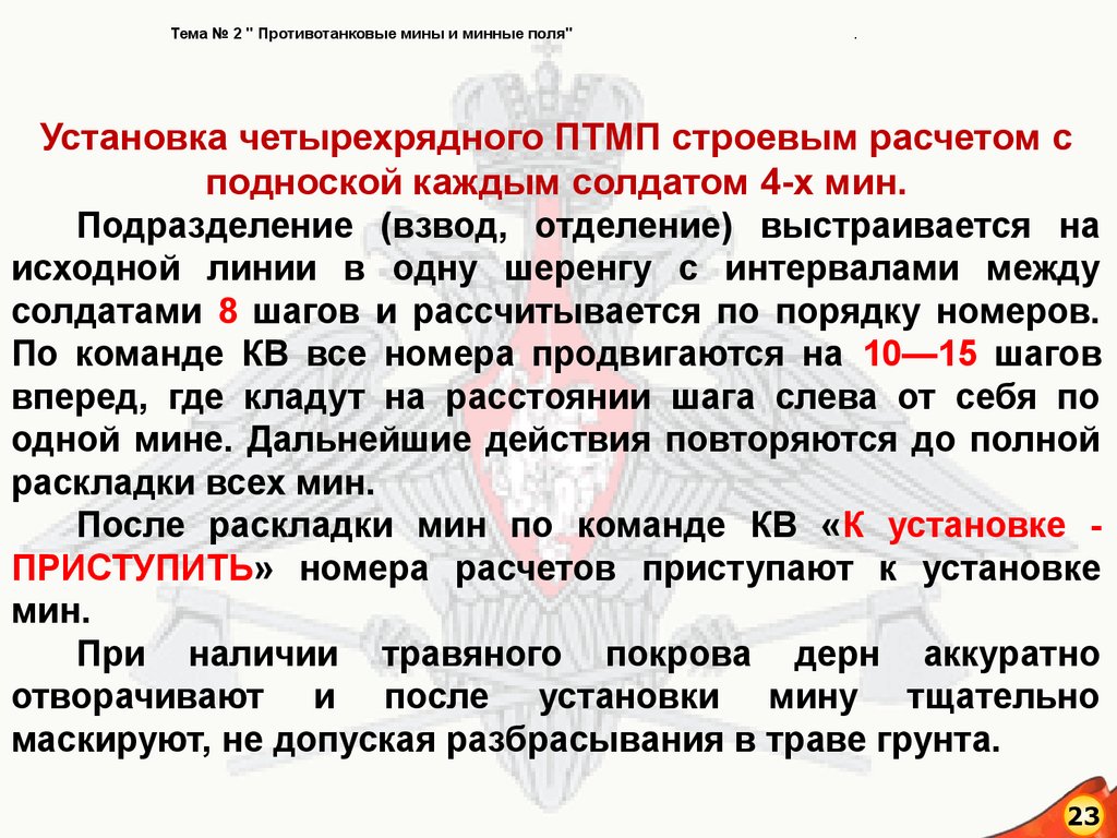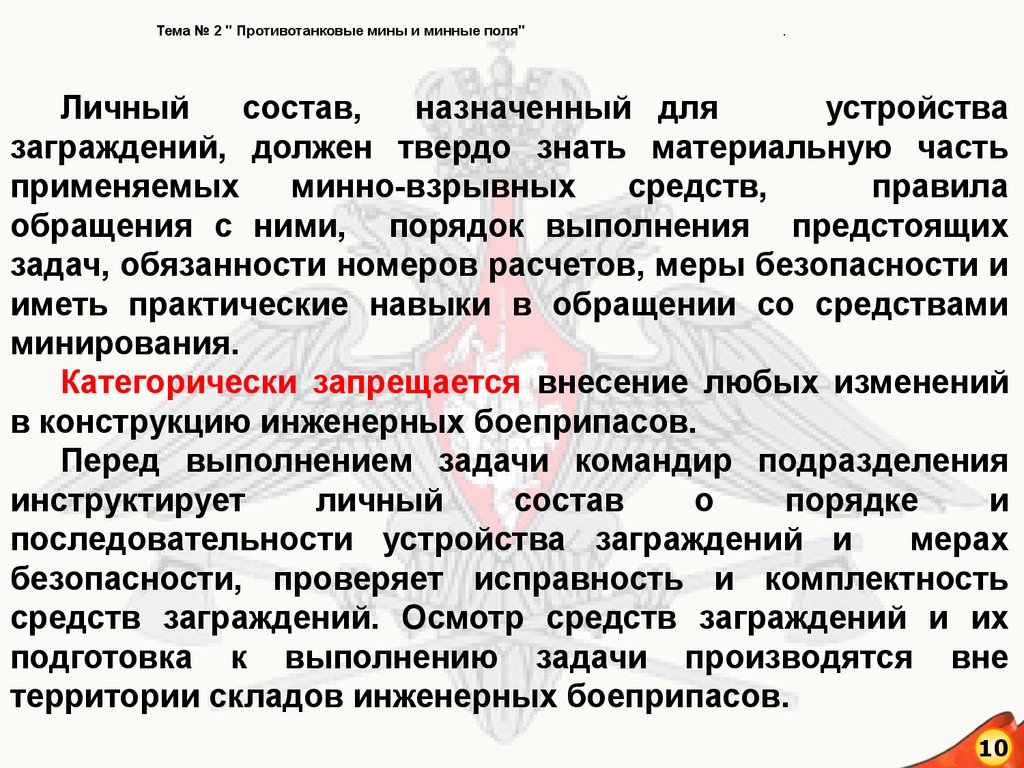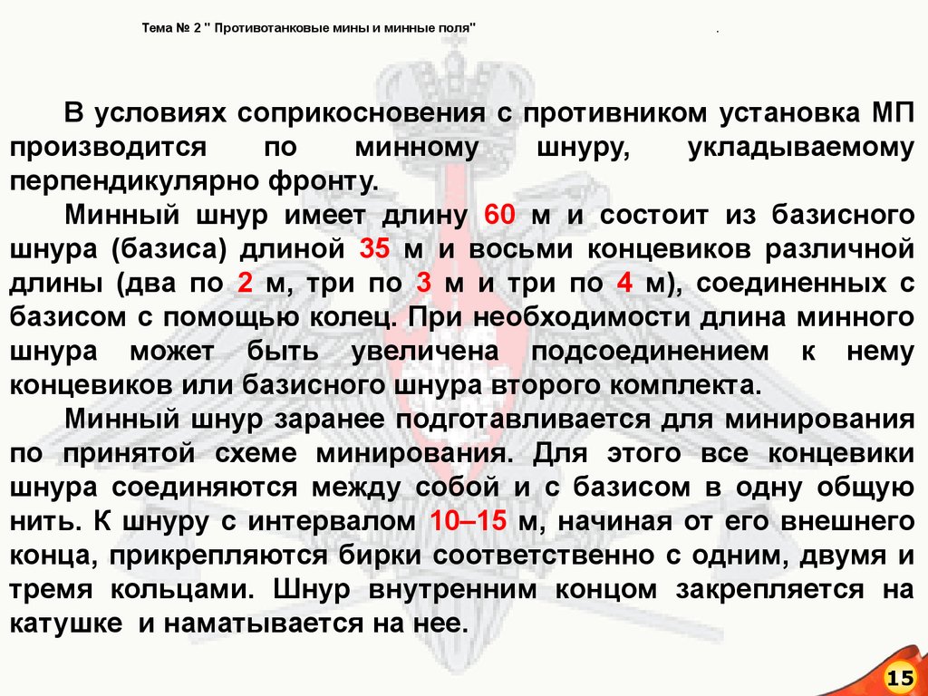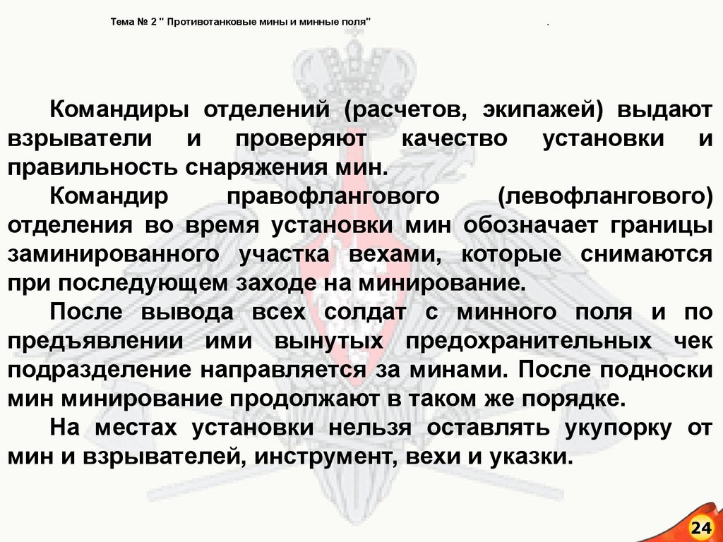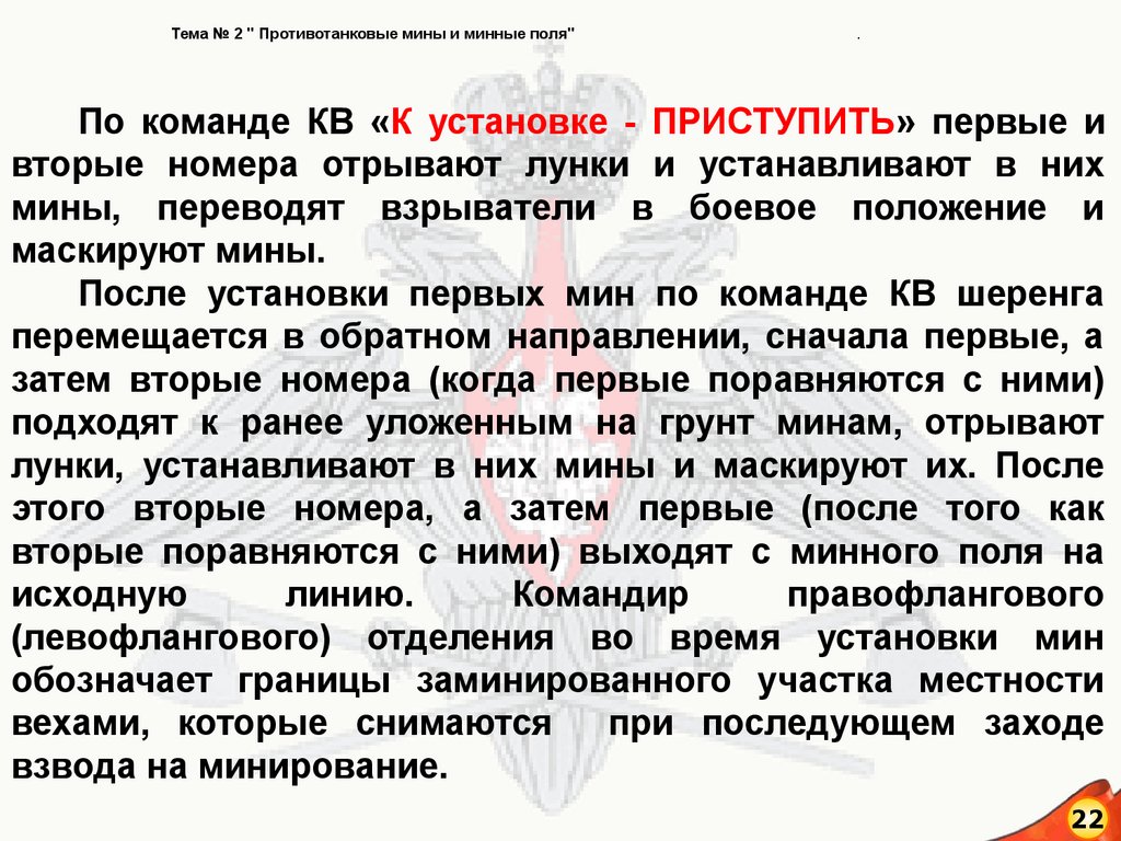 Тема № 2 " Противотанковые мины и минные поля"Занятие