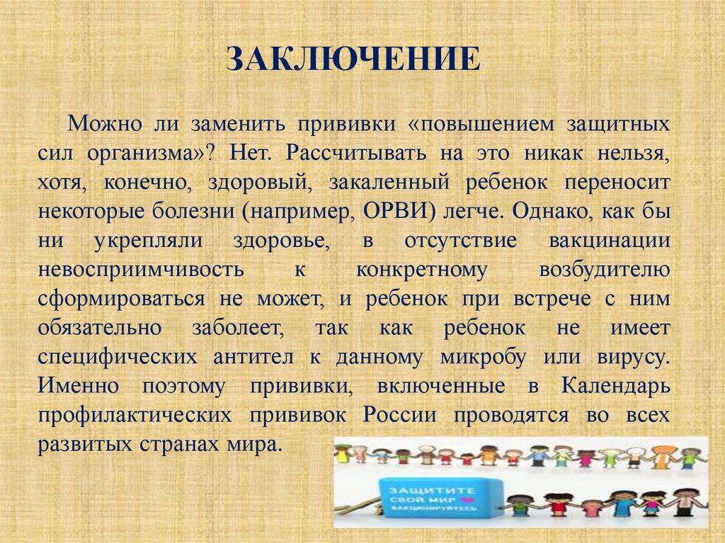 ЗАКЛЮЧЕНИЕМожно ли заменить прививки «повышением защитных