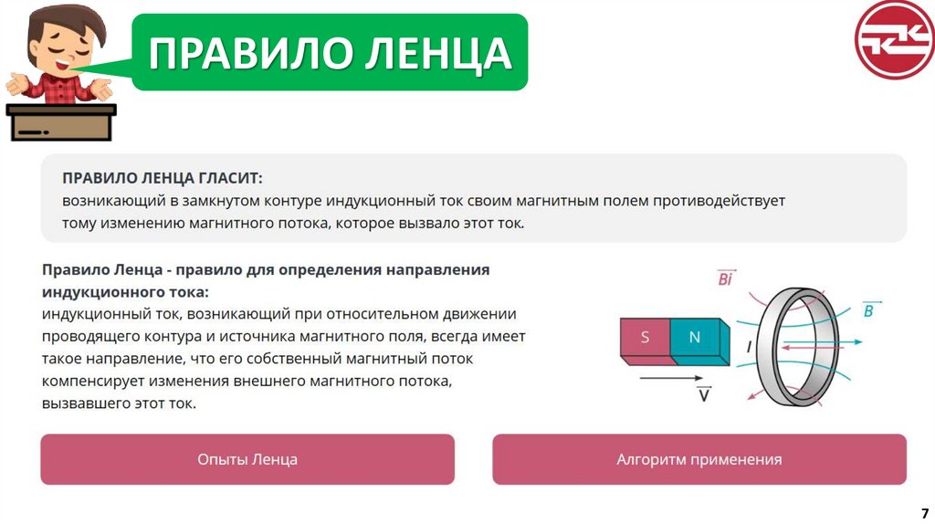ПРАВИЛО ЛЕНЦА (слайд 7)
