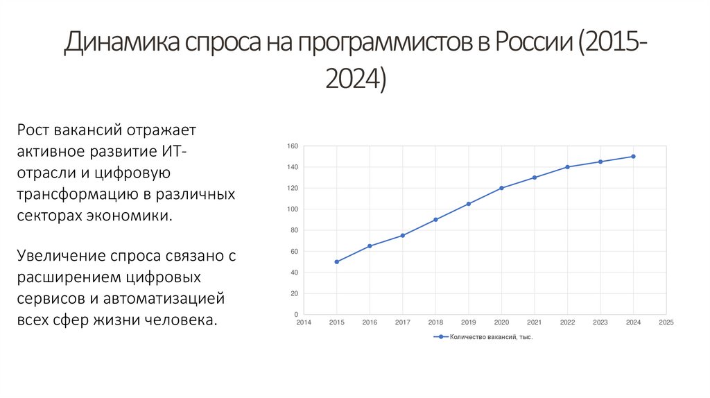 Динамика спроса на программистов в России (20152024)Рост вакансий отражает