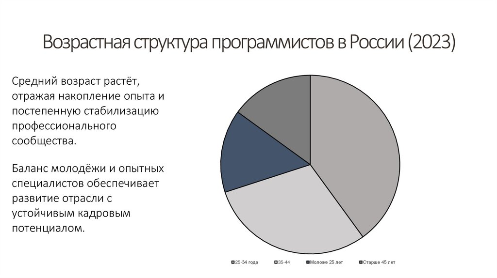 ВозрастнаяструктурапрограммистоввРоссии(2023)Средний возраст растёт,