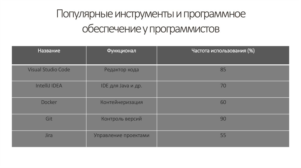 Популярныеинструментыипрограммноеобеспечениеупрограммистов
