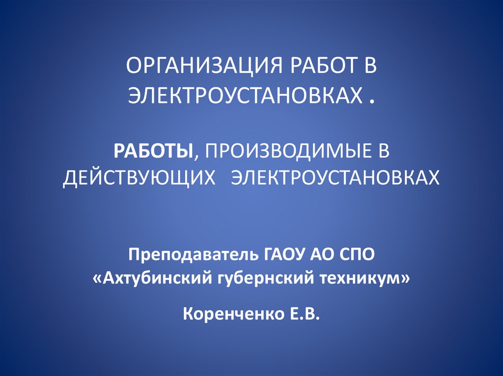 1. ОРГАНИЗАЦИЯ РАБОТ В ЭЛЕКТРОУСТАНОВКАХ . РАБОТЫ, ПРОИЗВОДИМЫЕ В ДЕЙСТВУЮЩИХ ЭЛЕКТРОУСТАНОВКАХ