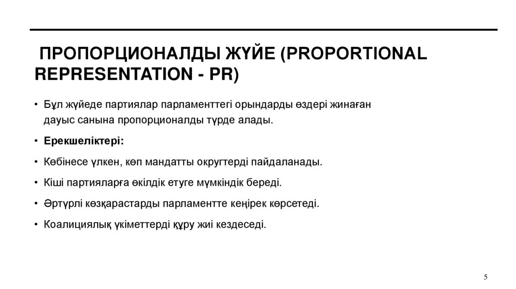 • Бұл жүйеде партиялар парламенттегі орындарды өздері жинаған
